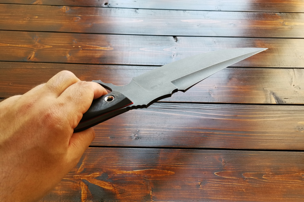 Il coltello sagomato, sabbiato.
